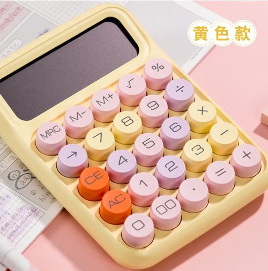 三年二班 1034328-Y 电子计算器 多巴胺彩色可爱机械按键计算器高颜值 黄色款 单位:个