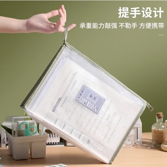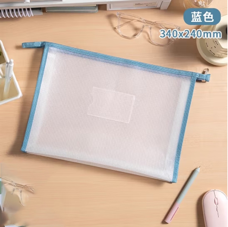 三年二班 5010263 文件袋 网纱单层文件袋拉链式文件夹大容量 蓝色 单位:个