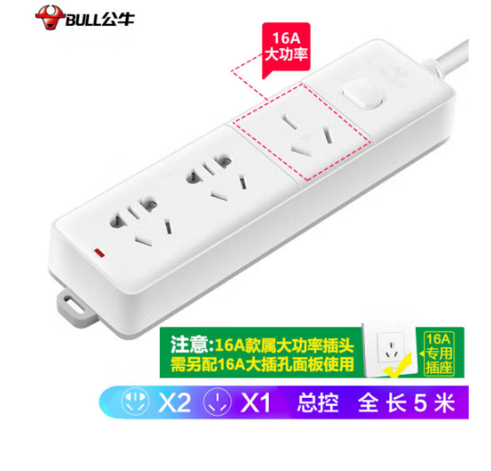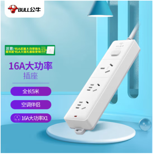 公牛/BULL GN-406D 插座 大功率16A插座/插线板/插排/空调插座 全长5米3位总控 单位:个