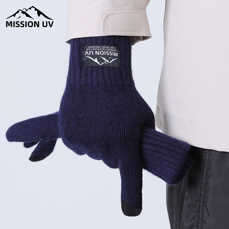 MISSION MUS056 蓝色 防寒手套 UV 羊毛保暖手套 单位:副