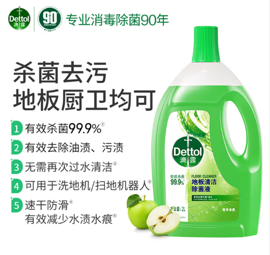 滴露/Dettol 3314128 多用途清洁剂 青苹净爽2L 单位:瓶