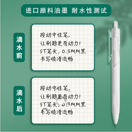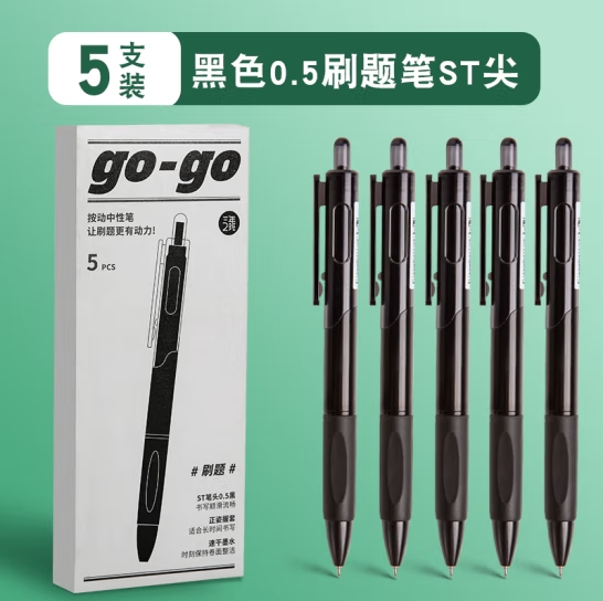 三年二班 5030854 书写用笔类用具 st笔尖速干按动中性笔高颜值水笔 黑色笔杆-黑色 5支/盒 单位:盒