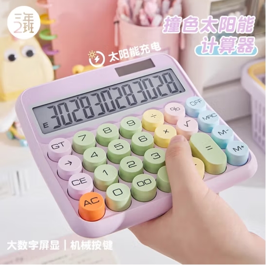 三年二班 1034390-01 电子计算器 多巴胺高颜值太阳能创意计算器 机械键手感 紫色 单位:个