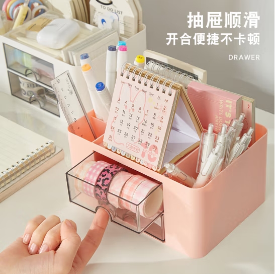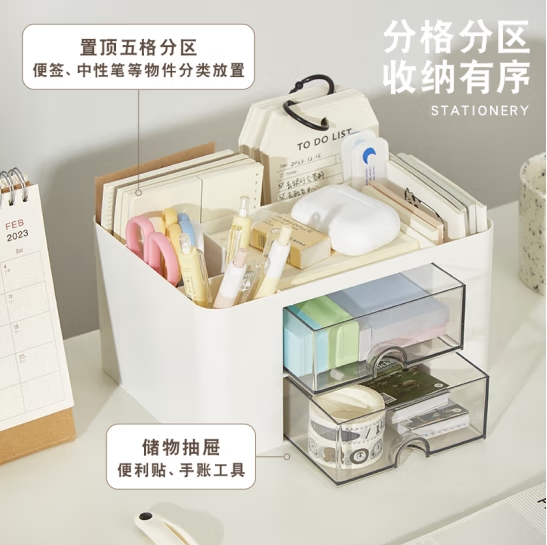 三年二班 5031041-W 笔筒 多层分隔轻奢风高颜值笔筒收纳 白色 单位:个