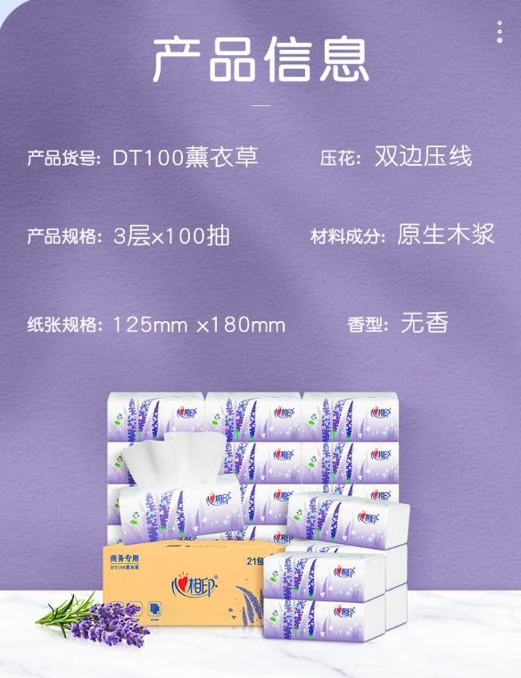 心相印/XINXIANGYIN DT100 软包抽取式面纸 60包(100抽/包) 单位:包