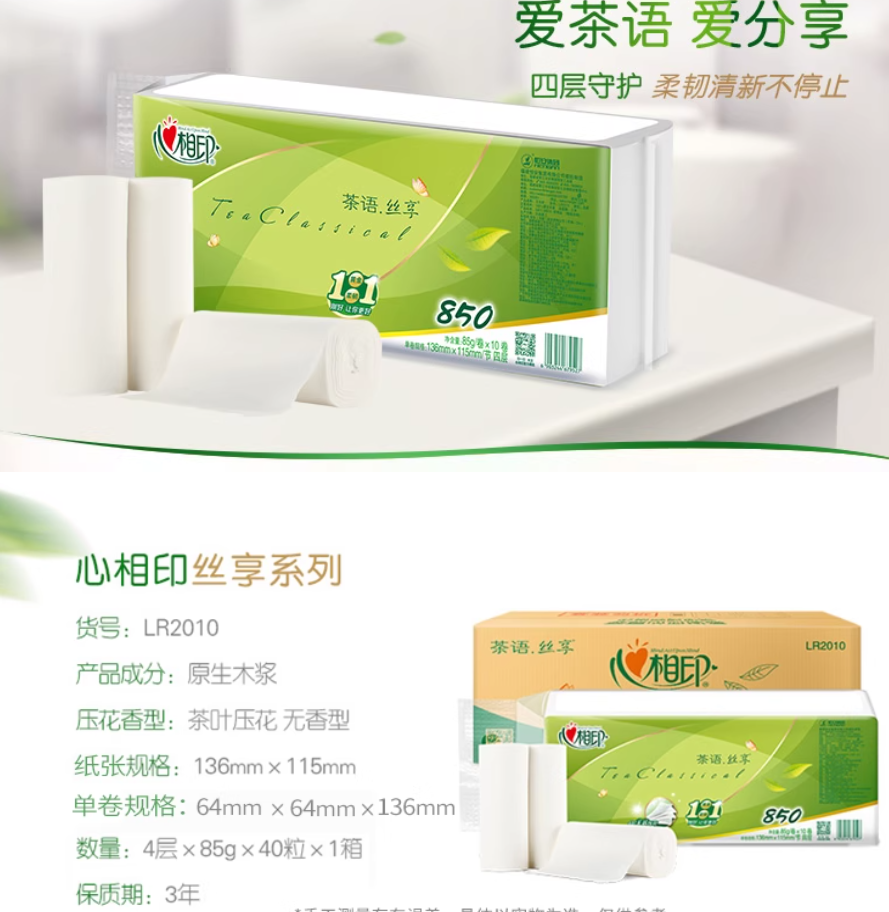 心相印/XINXIANGYIN LR2010 卷类卫生纸 10卷*4提(85g/卷)单位:提
