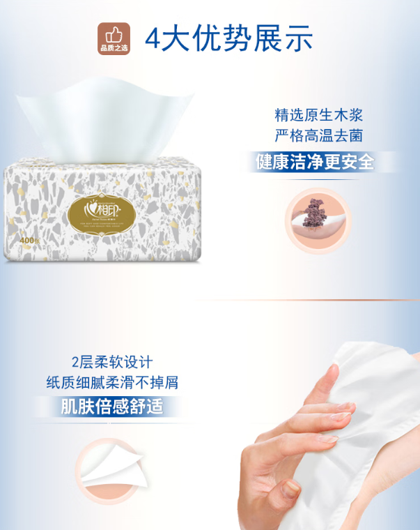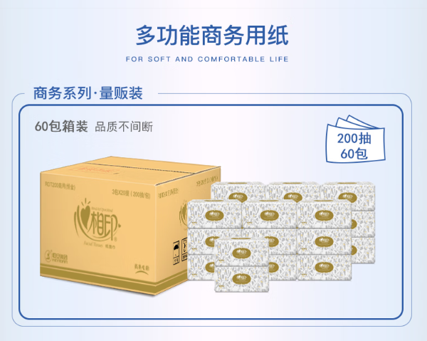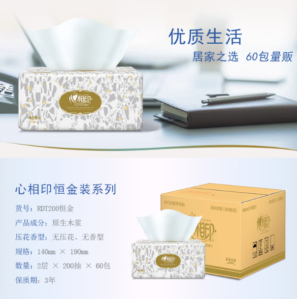 心相印/XINXIANGYIN RDT200 盒装抽取式面纸 (200抽*60包)单位:盒