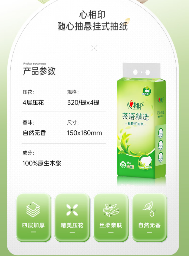 心相印/XINXIANGYIN DT10320 软包抽取式面纸 4提(320抽/提)单位:提