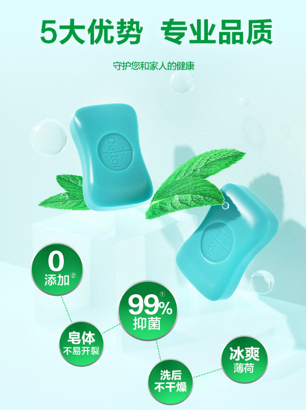 滴露/Dettol HYTC316502202 香皂 薄荷冰爽3块装*2 单位:块