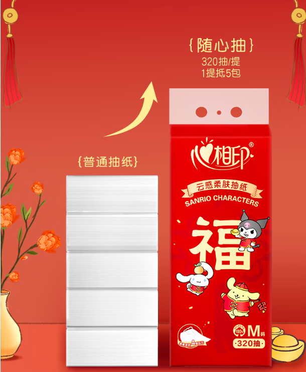 心相印/XINXIANGYIN DT20320 软包抽取式面纸 320抽*4提 单位:提