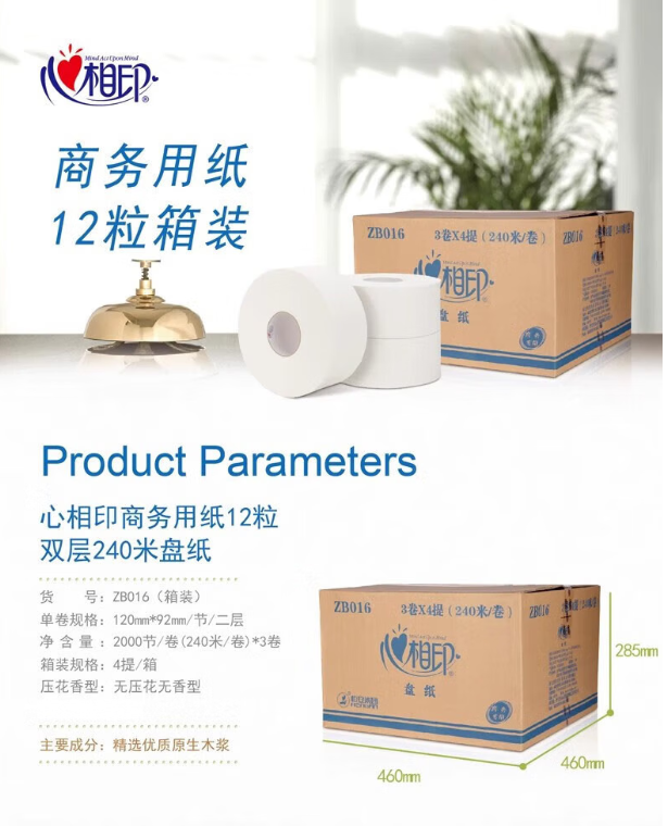 心相印/XINXIANGYIN ZB016 卷类卫生纸 2000节/12卷 单位:卷