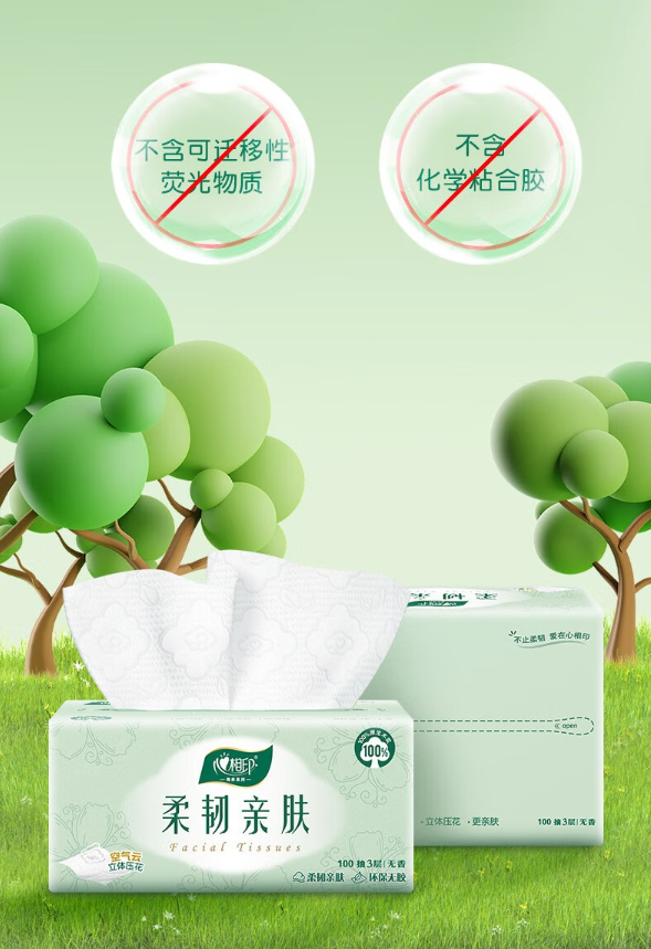 心相印/XINXIANGYIN 6DT100 软包抽取式面纸 6包*1提(100抽/包)单位:提