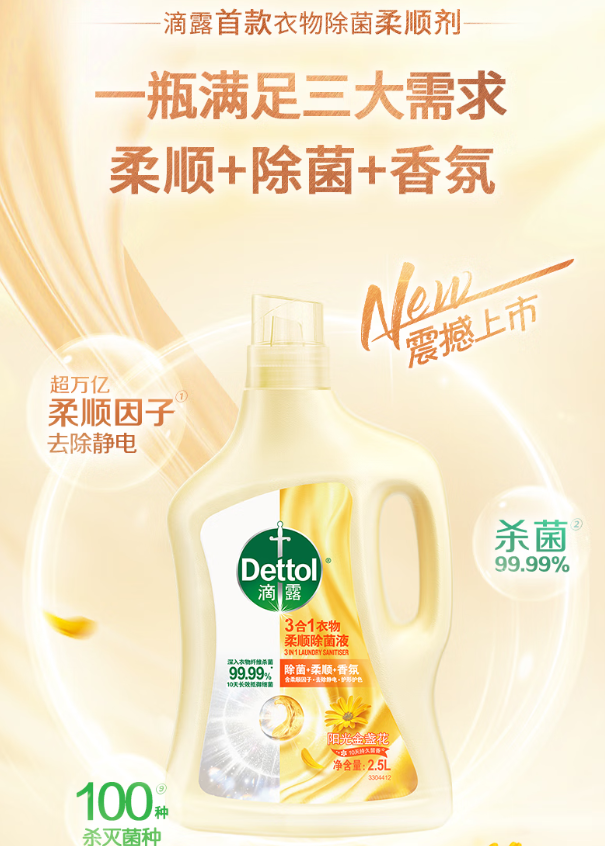 滴露/Dettol 3222580 多用途清洁剂 除菌柔顺 阳光金盏花2.5L 单位:瓶