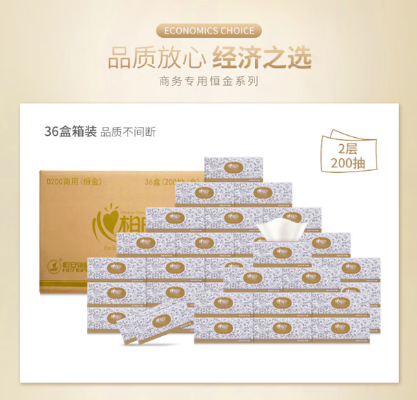 心相印/XINXIANGYIN D200 盒装抽取式面纸(200抽*36盒) 单位:盒