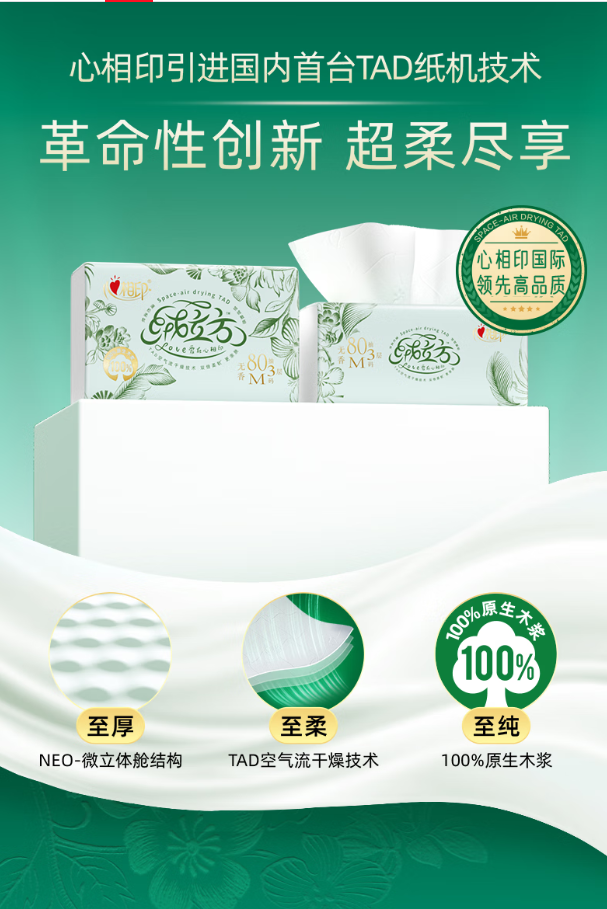 心相印/XINXIANGYIN TDT1080 软包抽取式面纸 16包(80抽/包)单位:包